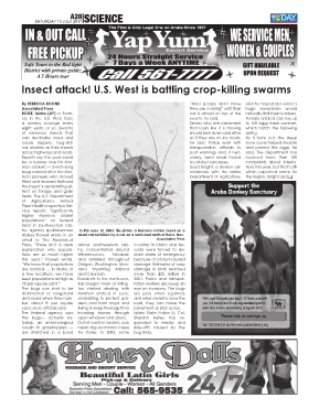 ho, agency spokeswoman In this June 12, 2003, file photo, a Mormon cricket feasts on a