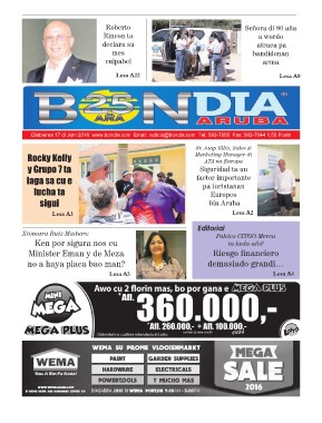 Diabierna 17 di Juni 2016 www.bondia.com Email: noticia@bondia.com Tel: 582-7800 Fax: 582-7044 1,50 Florin