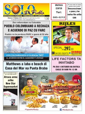 Dialuna 3 Oktober 2016 -Edicion-10 Vol.2079 Sta.Cruz #110 1.50 URATACA Tin mas arma na Aruba