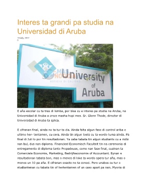 Universidad di Aruba a crece masha hopi mes. Sr. Glenn Thode, director di
