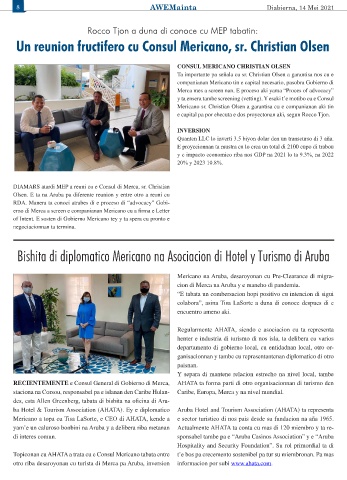 Topiconan cu AHATA a trata cu e Consul Mericano tabata entre t’e bos pa crecemento sostenibel pa tur su miembronan. Pa mas