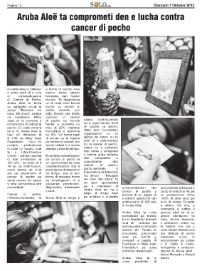 Aruba Aloë ta lanza un di cada ocho hende di cancer na pecho,