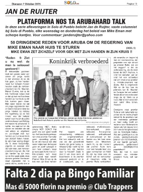 50 DRINGENDE REDEN VOOR ARUBA OM DE REGERING VAN