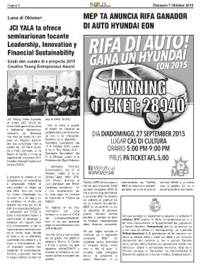 E proyecto ta consisti di un Sustainability”, dia 27 di rifa un auto Hyundai EON MEP ta anuncia e number mas ta gradici tur cu a