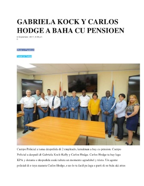 Policial a despedi di Gabriela Kock-Kelly y Carlos Hodge. Carlos Hodge ta bay laga
