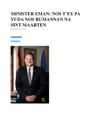 MINISTER EMAN: NOS T’EY PA YUDA NOS RUMANNAN NA SINT MAARTEN 6 September, 2017, 8:25 pm 0 15 Share on Facebook Tweet on Twitter