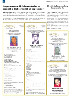 DEPARTAMENTO di Cultura Aruba den nomber di su director ta participa cu su DIABIERNA awo, dia 22 di september