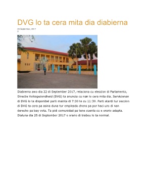 Directie Volksgezondheid (DVG) ta anuncia cu nan lo cera mita dia. Servicionan