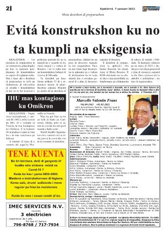 -mester tin 2 aña di eksperensia, no ta indespensabel, Entiero ta tuma luga djadumingu 9 yanüari na iglesia Atventista Antriol. Ta risibi