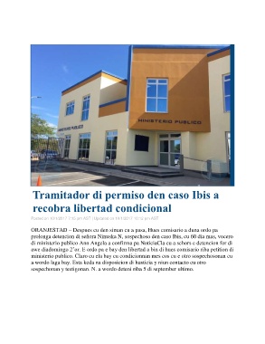di ministerio publico Ann Angela a confirma pa NoticiaCla cu a schors e detencion for di