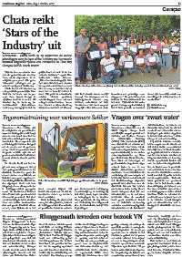 schenk van Sprock Distilleries. we op anderen kunnen vertrou- Chata-directeur Miles Mercera (links) met de Starts of the Industry van het tweede kwartaal van 2017.