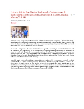 Stichting, Shenelle Perez di Noord Taekwondo Center, Myron Adams di San Nicolas Taekwondo Center,