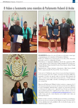 8 Hoben a huramenta como miembro di Parlamento Hubenil di Aruba