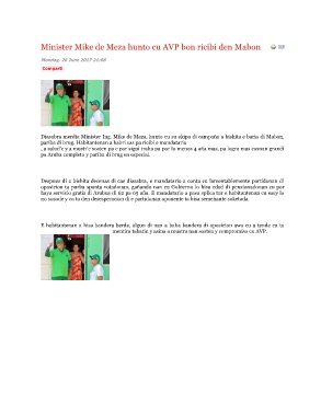 Minister Mike de Meza hunto cu AVP bon ricibi den Mabon