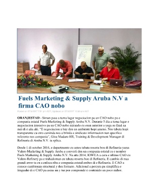 compania estatal Fuels Marketing & Supply Aruba N.V. Durante 5 dia a tuma lugar e