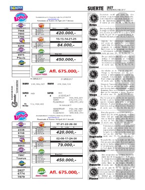 Number di suerte awe: 24, 21, 17, 23, 27, 19.