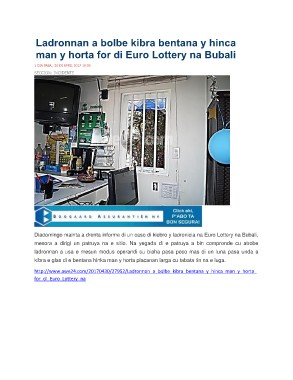 Diadomingo mainta a drenta informe di un caso di kiebro y ladronicia na Euro Lottery na Bubali,