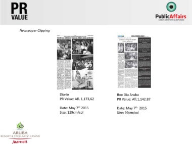 Newspaper Clipping Diario Bon Dia Aruba PR Value: Afl. 1,173,62 PR Value: Afl.1,142.87 Date: May 7th 2015 Date: May 7th 2015 Size: 129cm/col Size: 99cm/col