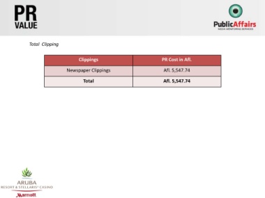 Total Clipping PR Cost in Afl. Afl. 5,547.74 Clippings Afl. 5,547.74 Newspaper Clippings Total