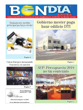 Diabierna 20 di APRIL 2018 www.bondia.com Email: noticia@bondia.com Tel: 582-7800 Fax: 582-7044 1,50 Florin