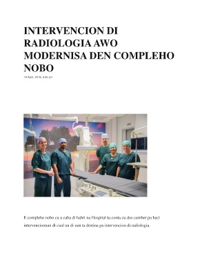 INTERVENCION DI RADIOLOGIA AWO MODERNISA DEN COMPLEHO NOBO 19 April, 2018, 6:05 pm 137 E compleho nobo cu a caba di habri na Hospital ta conta cu dos camber pa haci intervencionnan di cual un di nan ta destina pa intervencion di radiologia.
