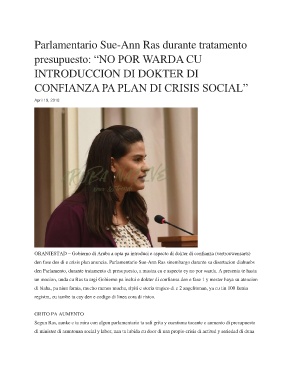 den fase dos di e crisis plan anuncia. Parlamentario Sue-Ann Ras sinembargo durante su disertacion diahuebs