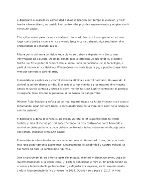 control ta wordo eherce tur dia. El a señala cu tur mainta e prijs maximo di e macuto