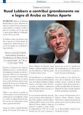 mara e fecha di Status Aparte na un door di ex-Prome Minister Lubbers Lubbers tabatin e pueblo di Aruba