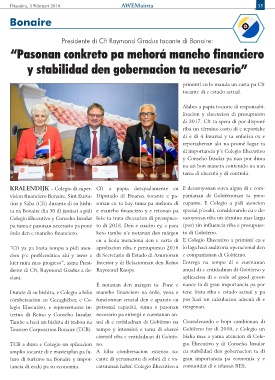 Presidente di Cft Raymond Gradus tocante di Bonaire: