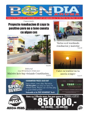 Diabierna 19 di Augustus 2016 www.bondia.com Email: noticia@bondia.com Tel: 582-7800 Fax: 582-7044 1,50 Florin