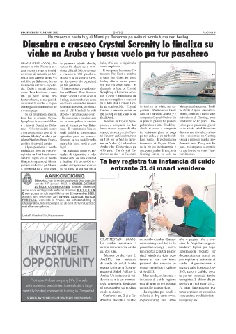 publica riba social media. nan a bin haya sa di e caso ahe na Aruba. (E lo bandona financiero di Crystal Cruis- damente mes. Pesey seis dia