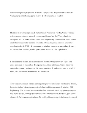 ACE Consultant a traha e peticion pa mira kico mester haci riba e piscinanan.