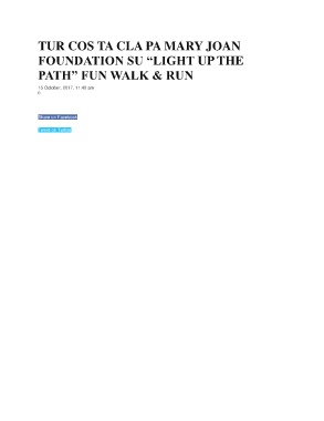 TUR COS TA CLA PA MARY JOAN FOUNDATION SU “LIGHT UP THE PATH” FUN WALK & RUN 15 October, 2017, 11:40 am 0 76 Share on Facebook Tweet on Twitter