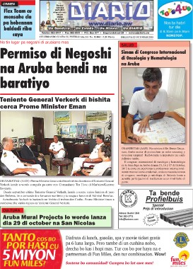 cu ta tuma luga na Aruba dianan 15, 16 y 17 di October,