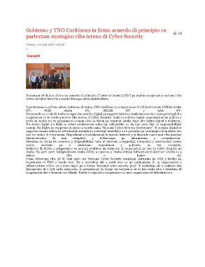 Gobierno di Aruba a compromete su mes pa establece un structura di cooperacion pa loke ta Cyber Security na