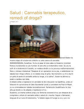 E debate ariba e legislacion di cannabis ta den discusion na Surafrica, unda un