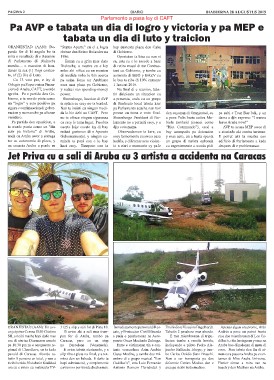 ora cu e avion cu matricula YV- mina den un bahada. E daño ta Cadillac’s”, esta Luis Fernando diferente Centro Medico den e beach y den Mallnan na Aruba.