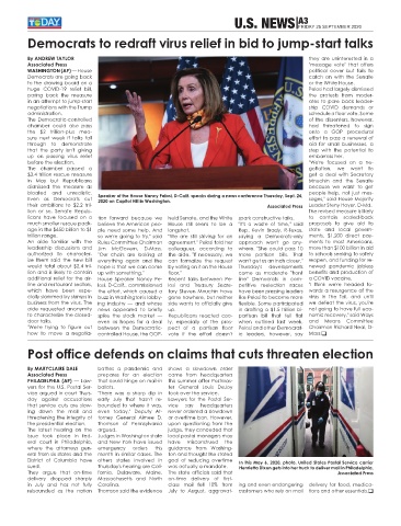 additional relief for the air- House Speaker Nancy Pe- Recent talks between Pe- line" Democrats in com- a COVID vaccine.