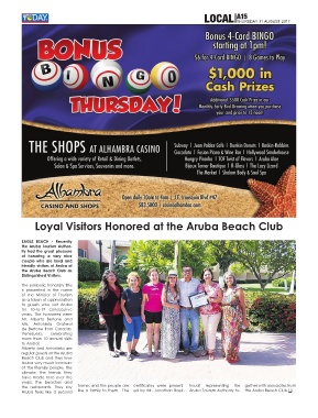 Aruba feels like a second like a family to them. The ed by Mr. Jonathan Boek- Aruba Tourism Authority to- the Aruba Beach Club.q