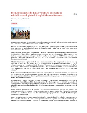 Diaranson atardi Prome Minister Mike Eman tabata na tereno di Rough Riders na Savaneta pa presencia