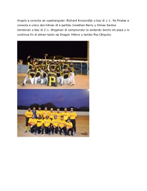 Angelo a conecta un cuadrangular. Richard Krozendijk a bay di 1-1. Pa Piratas a