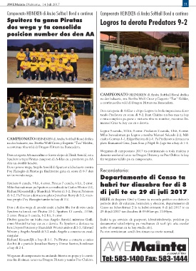 Spuiters 8 careda, 9 hit, 4 error. Piratas 7 careda, 6 hit, 2 error. habri tur diasabra for di 8