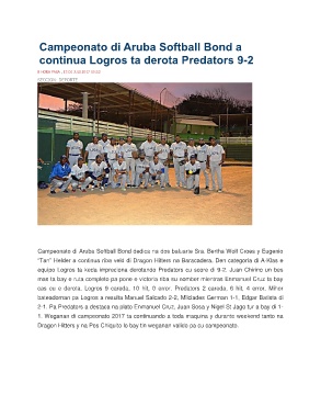 equipo Logros ta keda impreciona derotando Predators cu score di 9-2. Juan Chirino un bes