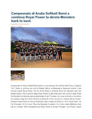 Campeonato di Aruba Softball Bond dedica na dos baluarte Sra. Bertha Wolf Croes y Eugenio