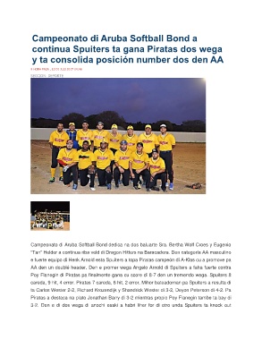 careda, 9 hit, 4 error. Piratas 7 careda, 6 hit, 2 error. Mihor bateadornan pa Spuiters a resulta di