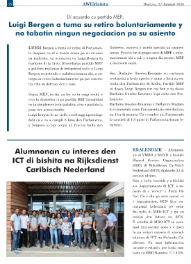 Luigi Bergen lo no ricibi overbruggingstoelage pa 11or di mainta. Cu e cambio aki Parlamento