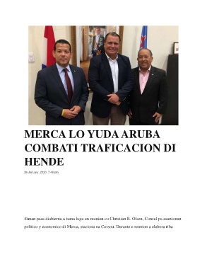 MERCA LO YUDA ARUBA COMBATI TRAFICACION DI HENDE 26 January, 2020, 7:48 pm 138 Siman pasa diabierna a tuma luga un reunion cu Christian R. Olsen, Consul pa asuntonan politico y economico di Merca, staciona na Corsou. Durante e reunion a elabora riba