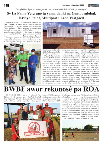 K RA LEN D IJ K - mente a rekonosé 'Bo- bra awor BWBF tin persona òf MBO, por kore stazje na Veldkamp i Janine Pieters-