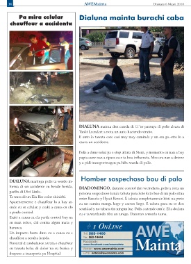 ende cu su celular, y esaki a causa cu elo scuridad y no tabata tin ningun luz. Polis a atende cun’e. El a declara