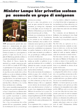 plan di Minister pa privatisa scolnan, ta un sistema di educacion. Nos kier mira e proceso ey sigui, nos